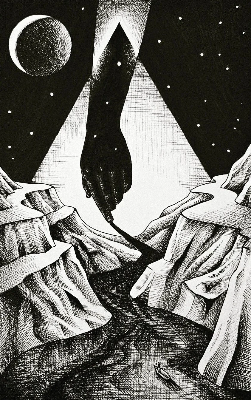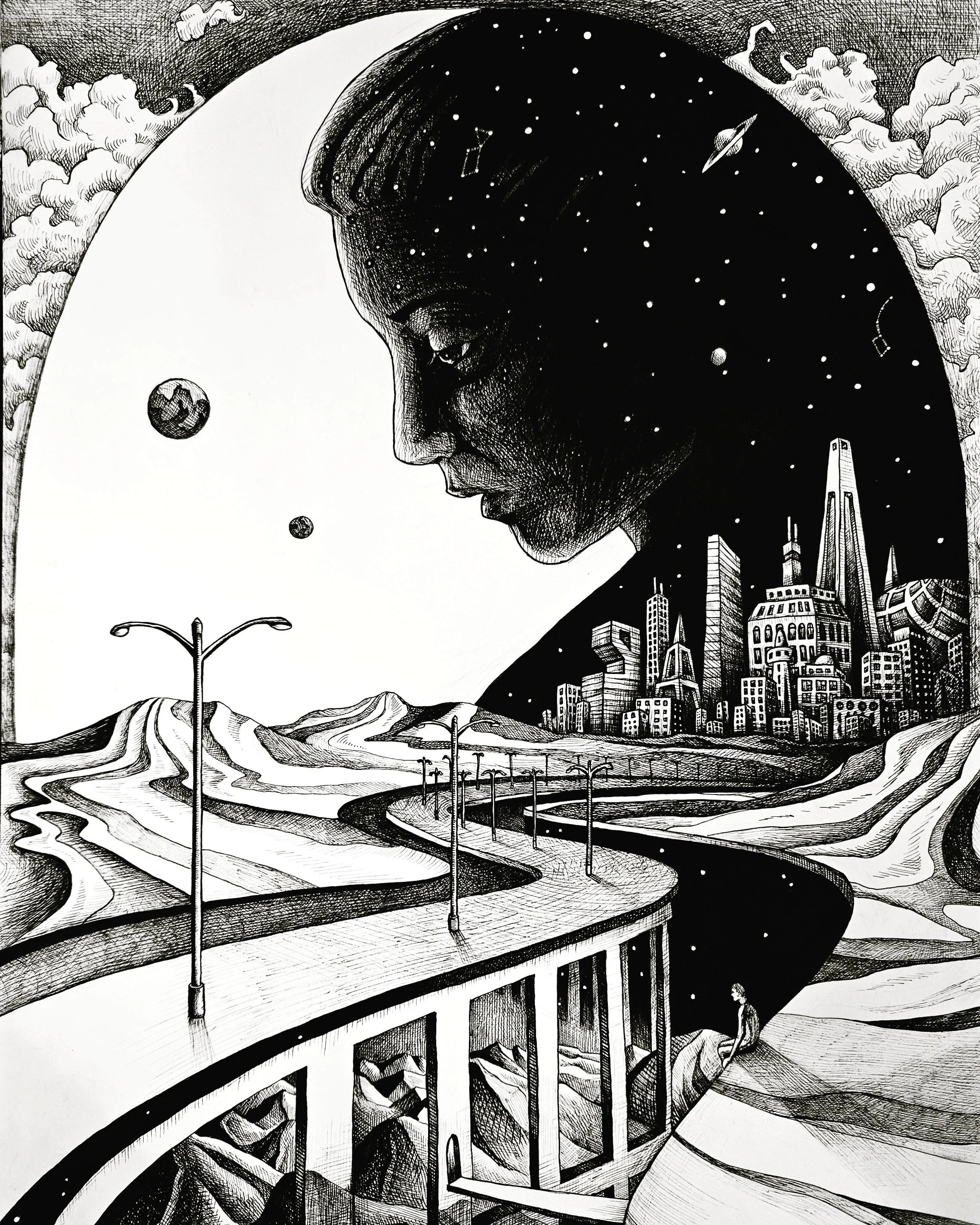 Charting the Path, 2025, pen & ink, 5.5”x8.5”